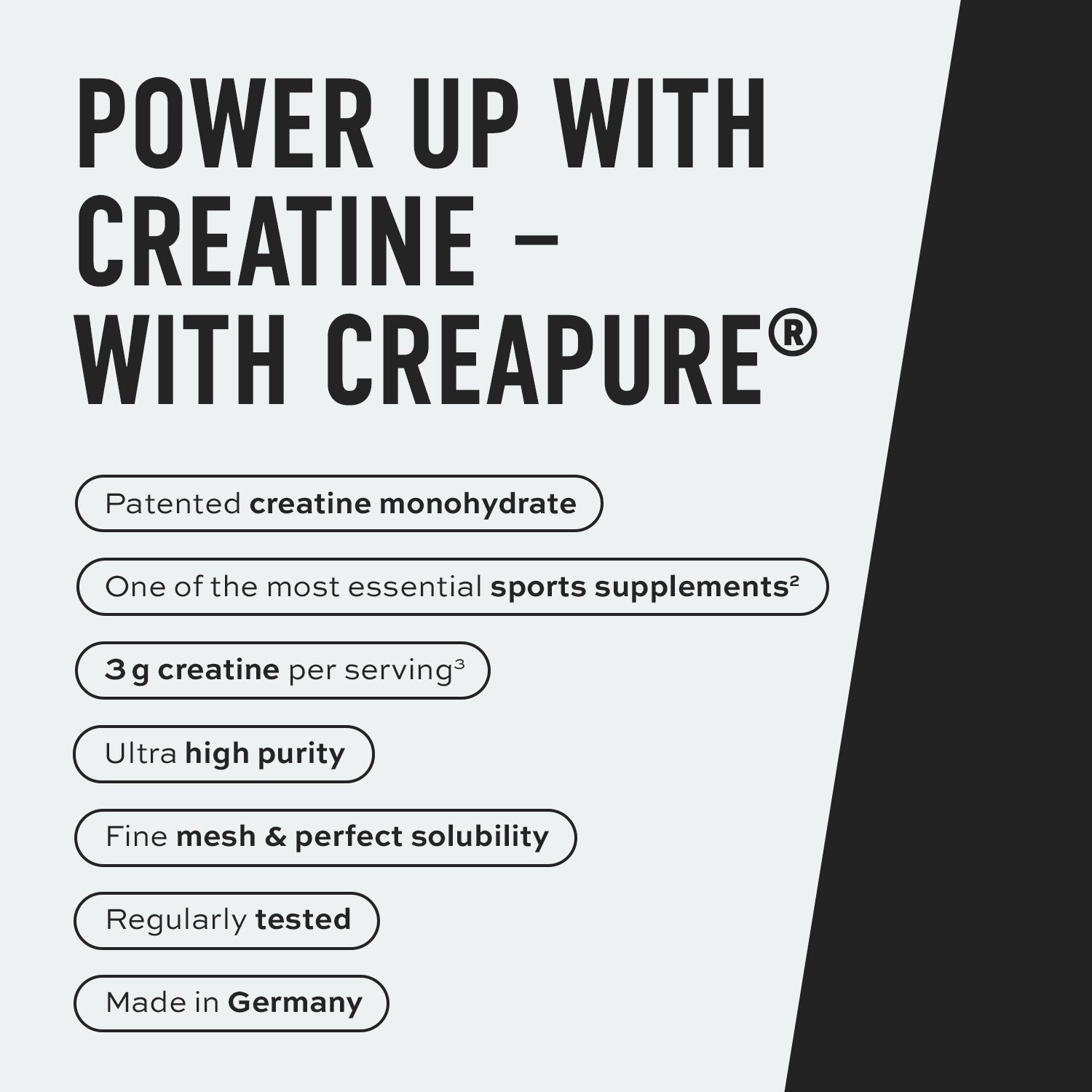 Power up with creatine - avec notre créatine Ultrapure. La poudre de créatine de haute qualité est notre must-have pour tous les athlètes qui veulent tirer davantage de leur entraînement : Car la créatine augmente tes performances physiques.1