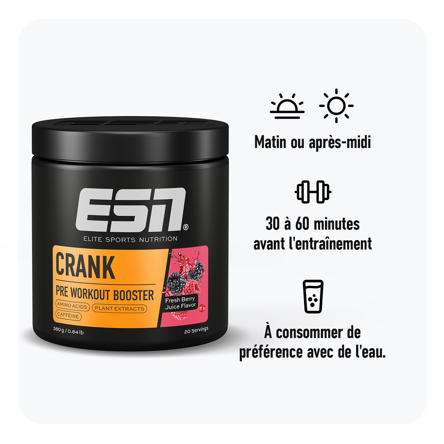 Crank up your training - avec Crank. Notre Allrounder te donne le boost dont tu as besoin pour atteindre le maximum dans ton entraînement ! Parfait pour tous les athlètes qui veulent encore réussir la dernière répétition, mobiliser le peu de force qui leur reste et tirer le meilleur d'eux-mêmes !