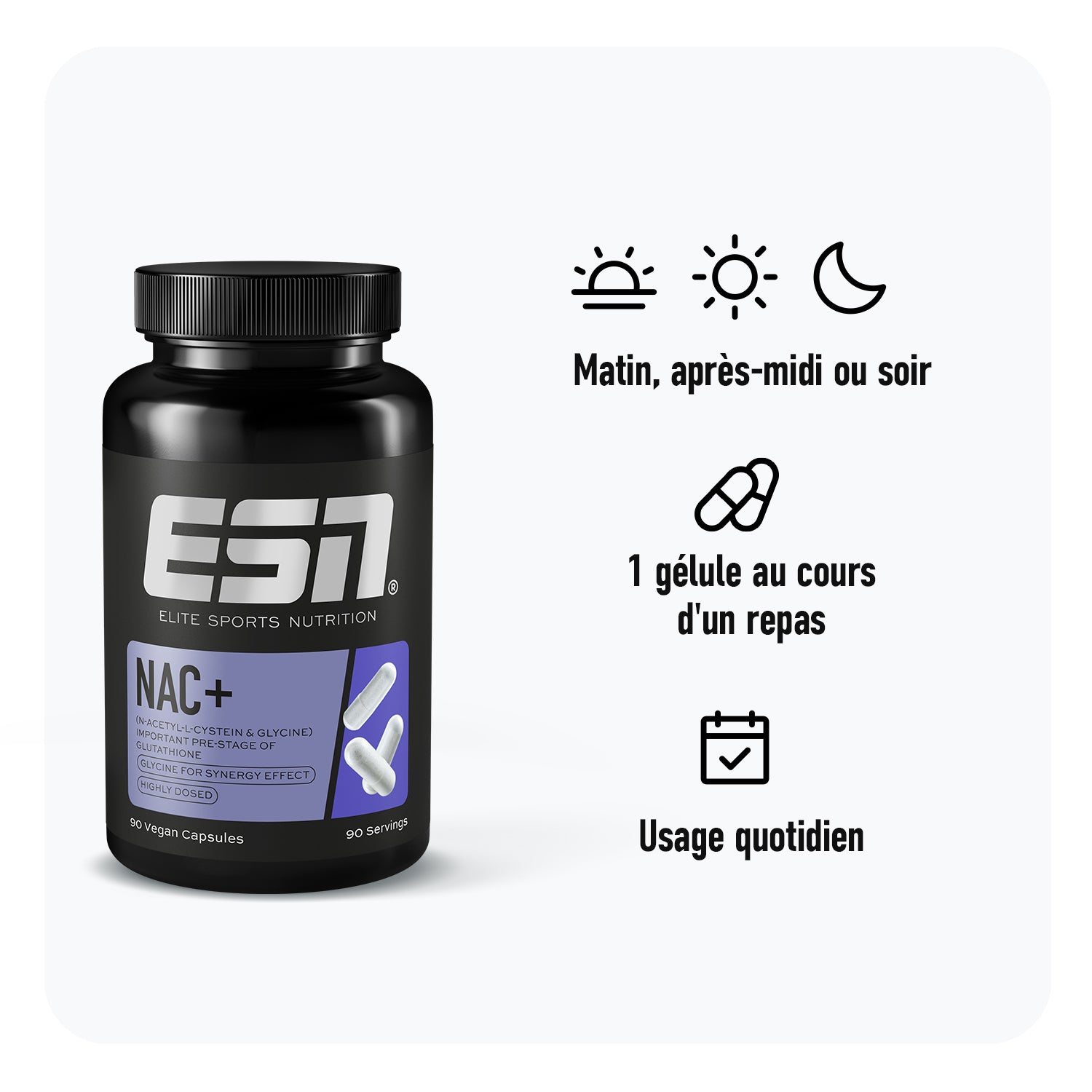 Notre Pro Series NAC + L-Glycine est le support optimal pour ta régénération. Le NAC, ou N-acétyl L-cystéine, est une version légèrement modifiée de la cystéine, un acide aminé naturel qui participe à la formation de glutathion par l'organisme.1 C'est l'un des antioxydants les plus puissants et il est particulièrement recommandé après des sessions d'entraînement intenses. Et la L-glycine? C'est un autre acide aminé qui est également essentiel pour la synthèse de l'acide aminé glutathion.