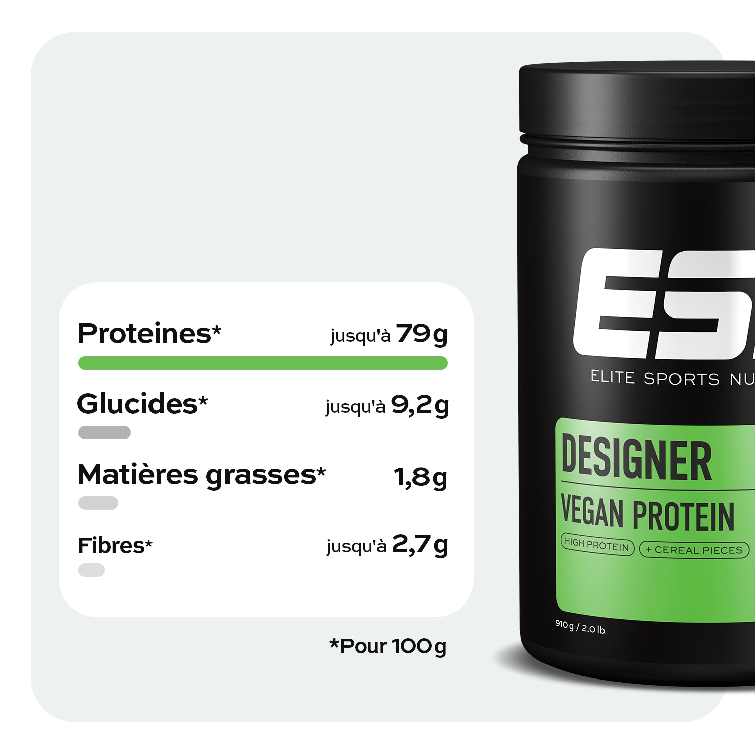 Tu as déjà essayé des protéines en poudre végétaliennes et tu as été déçu par leur goût fade et leur consistance sablonneuse et farineuse? Pas avec notre Designer Vegan Protein: découvre des shakes de protéines crémeux dans des variétés délicieuses avec une consistance incomparable et un maximum de goût - et ce sans ajout de sucre. 5 Pour la douceur, nous utilisons des édulcorants tels que la stévia, ce qui rend notre poudre de protéines végétalienne idéale pour ton style de vie fitness. Du chocolat aux noix en passant par les saveurs particulières - goûte à nos délicieuses variétés et trouve tes favorites.
