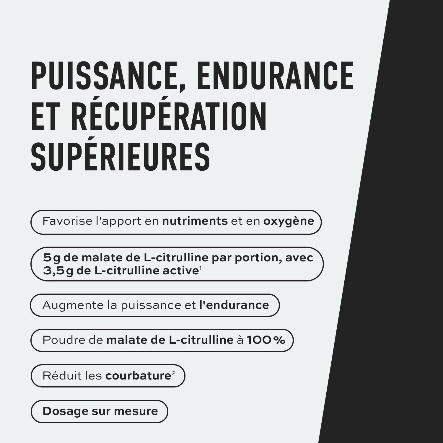 - 5 g de L-Citrulline Malate par portion, dont 3,5 g de L-Citrulline active 1