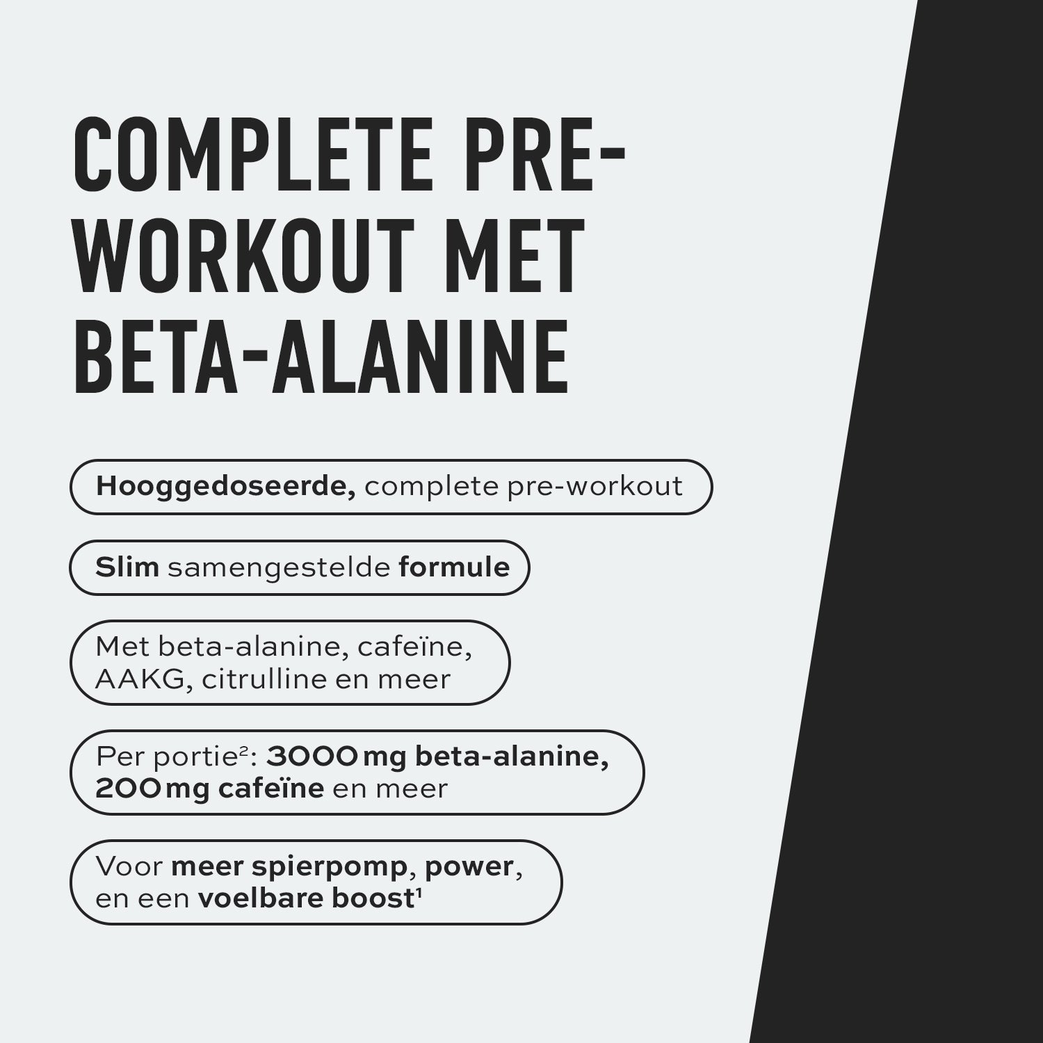 Pre-workout is een supplement dat je helpt je prestaties te verbeteren en je training een boost te geven. De ingrediënten bieden extra ondersteuning op het gebied van focus, energie, uithoudingsvermogen en spierpomp. Zoals de term 'pre' al aangeeft, neem je dit supplement in poeder- of capsulevorm vóór je training in om het beste uit jezelf, je lichaam en je training te halen.