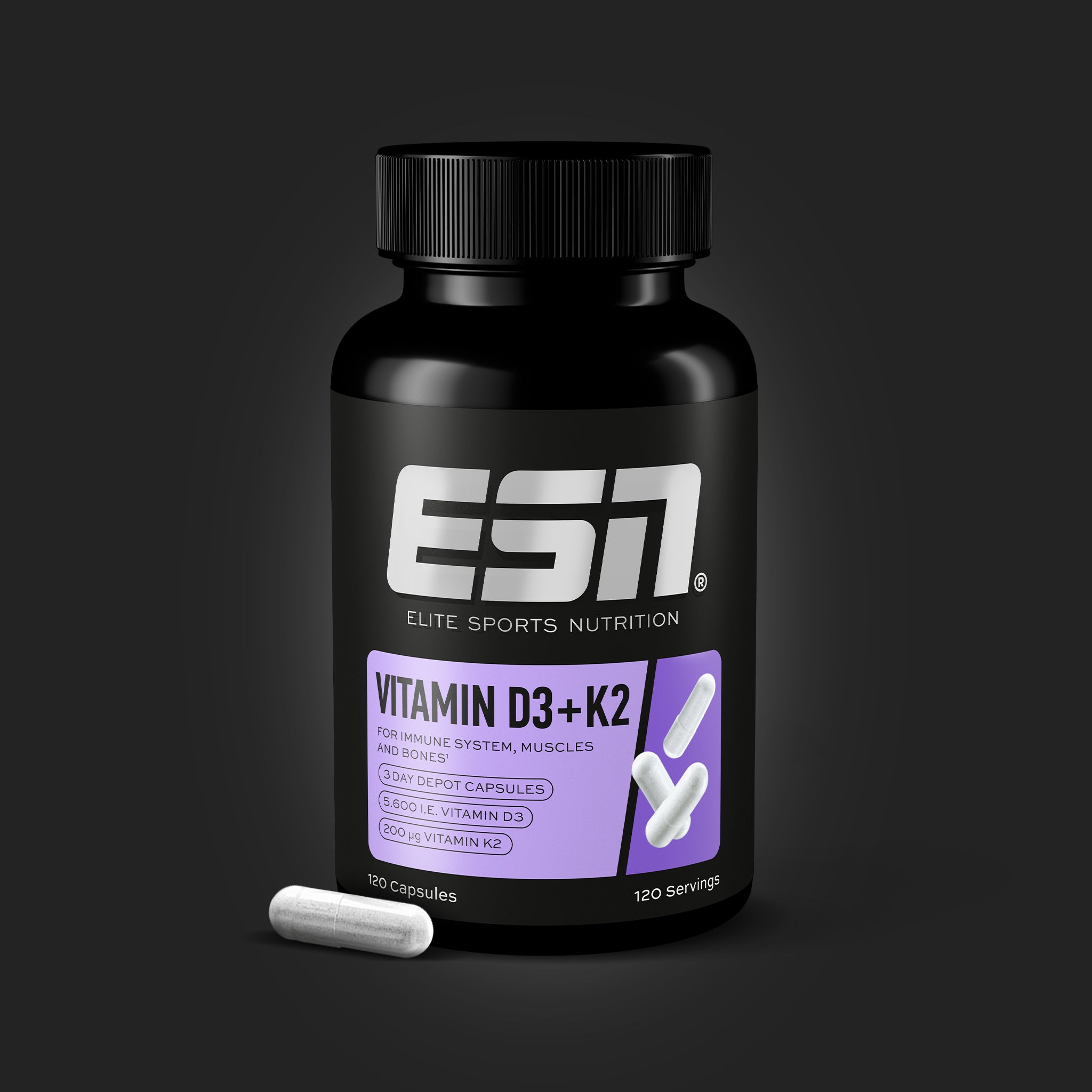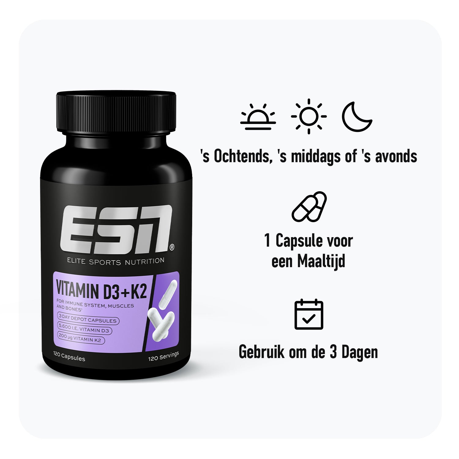 - Een krachtige dosis van 5.600 i. E vitamine D3 & 200 µg vitamine K2 MK-7³