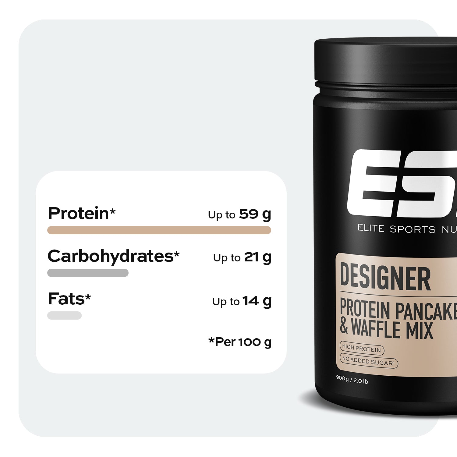 Milk protein concentrate 54%, wheat flour, chicken egg white powder, whole egg powder, raising agent(sodium bicarbonate), acidifier (citric acid), flavouring. Origin of ingredients: EU/non-EU.Protein Pancakes & Waffles Mix Key Facts