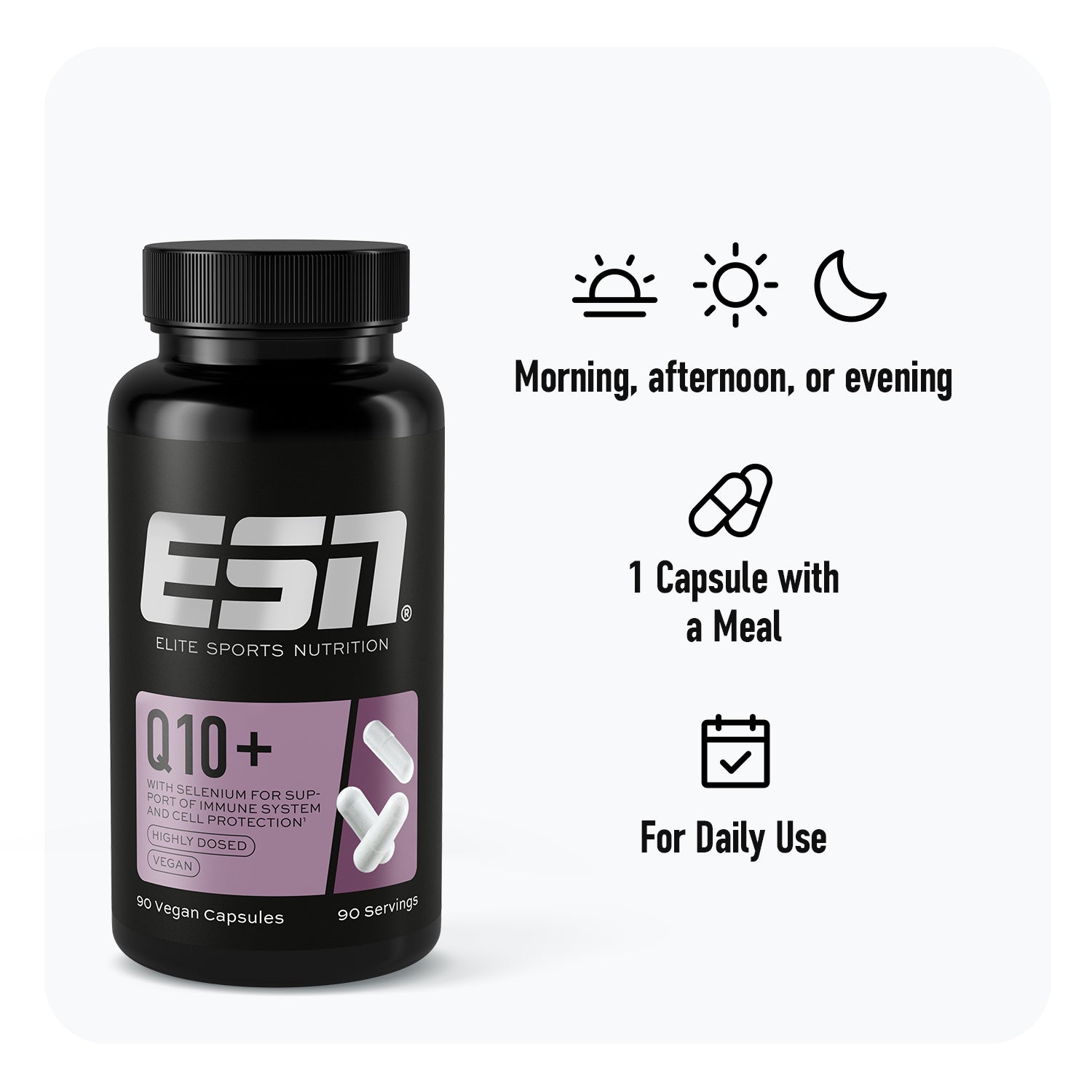 But no worries:Our ESN Pro Series Q10 + Selenium can support your athletic performance by reducing oxidative stress in the cells 3 and thus maintaining the function of your mitochondria. 9 It can also help you to optimize your performance while supporting your health and regeneration. 10,11,12