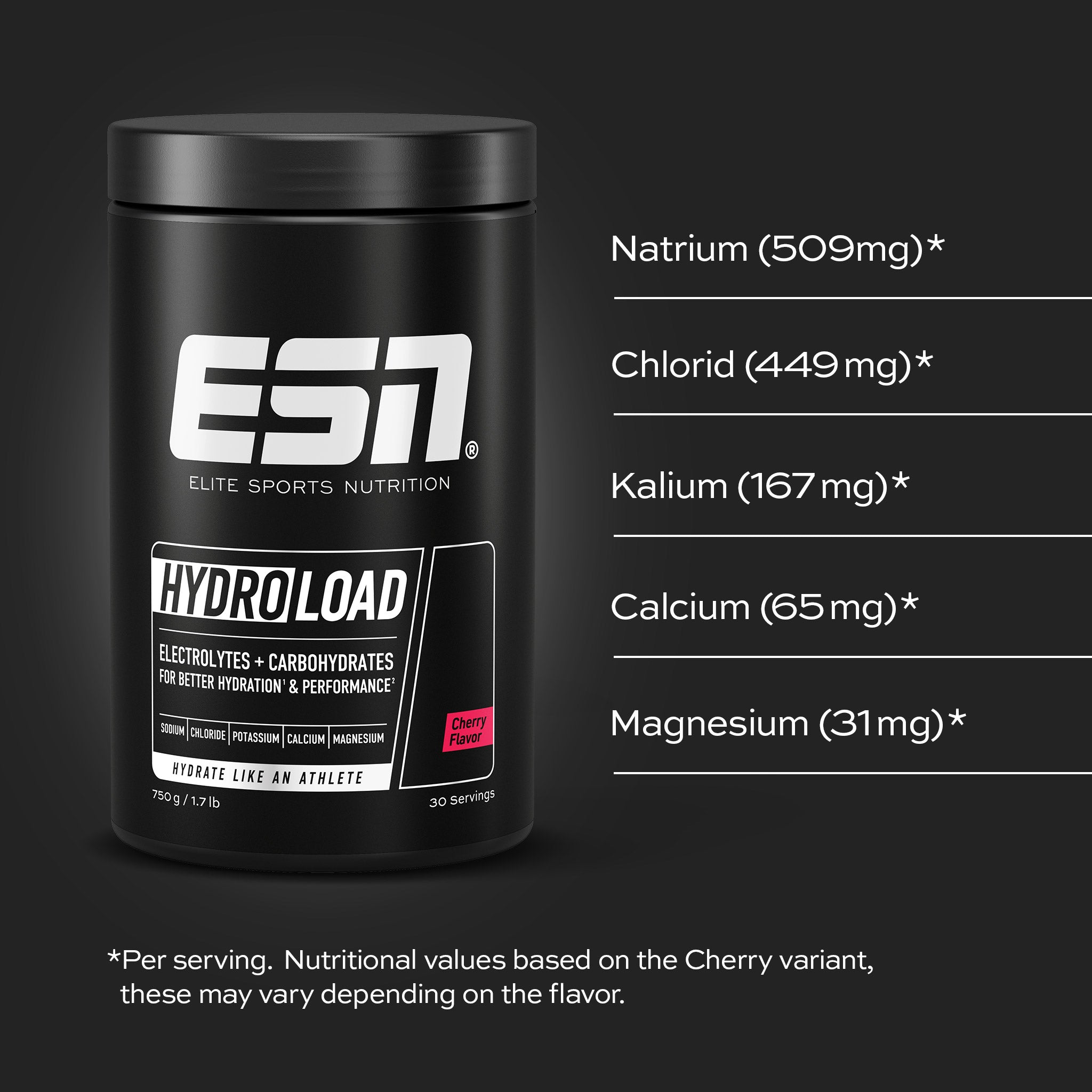 Dextrin, Dextrose, Acids (Citric Acid), Flavoring, Sodium Bicarbonate, Anti-Caking Agents (Silicon Dioxide), Sodium Chloride, Trisodium Citrate Dihydrate, Calcium Gluconate, Coloring Foods (Beetroot Powder), Potassium Chloride, Magnesium Citrate, Potassium Citrate, Sweeteners (Sucralose, Acesulfame K), Colors (Carotenes)HydroLoad Key-Facts